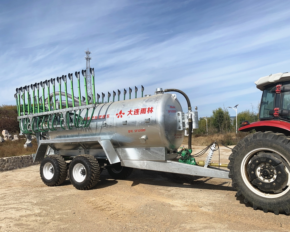 液体有机肥施肥罐车是以拖拉机为动力,把喷洒软管并列排列,形成梳子形状的喷洒支架(亦可配置深松施肥犁头),利用真空泵将存储于罐体内的液肥直接输送到土壤中的一种新型农机装备。