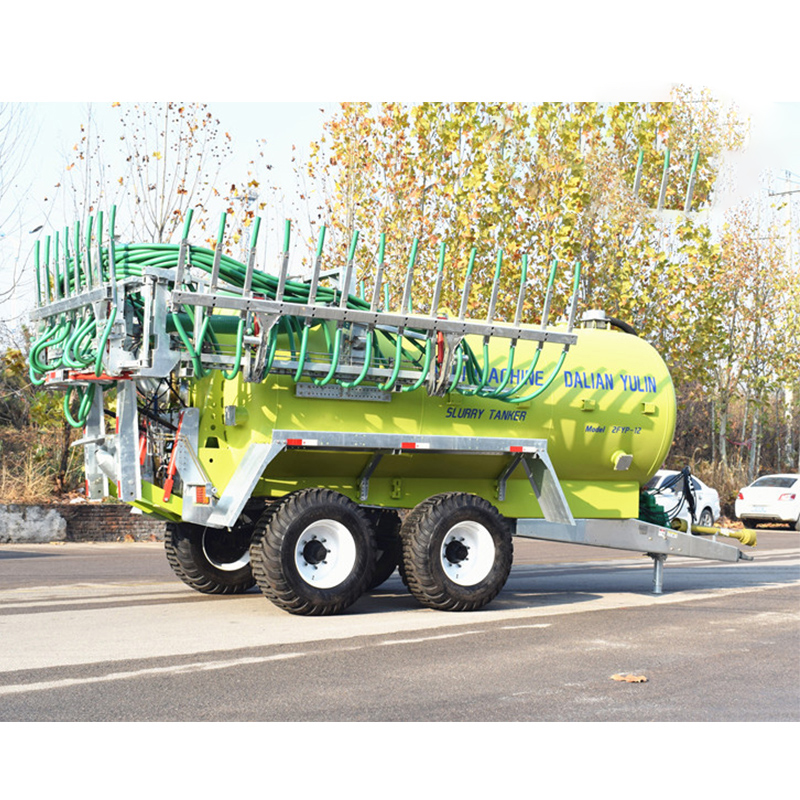 液体有机肥施肥罐车是以拖拉机为动力,把喷洒软管并列排列,形成梳子形状的喷洒支架(亦可配置深松施肥犁头),利用真空泵将存储于罐体内的液肥直接输送到土壤中的一种新型农机装备,施肥罐车具有输送均匀、减少肥料蒸发、保留肥力、避免弄脏农作物等特点。